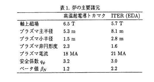 | 内容要旨 | 近年発展の目覚しい高温超電導体は、低温超電導体に比べ高温での使用が可能なことから、冷却が容易であること、熱的に安定であること等の特長を有する。このことから、従来の低温超電導材では不可能とされていた様々な応用が、高温超電導体により実現可能となり、その工学的応用は多岐に渡って考えられている。一方核融合研究に於いては、高温超電導体の応用は現在のところ、電流リードとしての使用が一部検討されているに過ぎない。確かに、高温超電導体の核融合炉応用を低温超電導体にて既に適用されている磁場コイル、電流リード等の枠内で考えれば、その魅力はあまり大きいものではない。しかし、高温超電導体の特長を勘案してその適用を図れば、従来の低温超電導体の用途とは違った応用が考えられ、核融合炉における高度な電磁場制御が可能になると期待される。 本研究では、高温超電導体およびプラズマの電磁的相互作用を明らかにし、それに基き磁気閉込め方式核融合炉に対する高温超電導体の応用を検討する。プラズマと高温超電導体の電磁相互作用という観点から、具体的な応用として、(1)高温超電導体によるプラズマ位置不安定性の改善、(2)高温超電導体によるトロイダル磁場リップルの抑制、の2点について改善策を提案する。いずれも、これまでに検討されたことのない新しい超電導体の応用であり、従来の低温超電導体では実現不可能なものである。これらは、現在設計が進められている国際熱核融合実験炉(International Thermonuclear Experimental Reactor:ITER)の体系に対してその有効性から工学的な適用可能性までを検討する。さらに、高温超電導体を用いたコンパクトなトカマク炉を設計し、高温超電導体応用による核融合炉の性能向上への効果を明示する。 第1章においては以上のような研究背景・目的と本論文の概要が述べられ、さらには最近の高温超電導体の開発及び応用の現状について概観している。 第2章においては、高温超電導体による電磁力の力学的安定性に着目し、プラズマ及び高温超電導体の相互作用について議論した。MHD的に不安定なプラズマの常電導体に対する応答には、Alfven時間及び導体の電気的時定数で特徴づけられる二つの時定数が存在し、前者の時間スケールでは安定、後者では不安定であることが知られている。また、完全導体を考えた場合には、Alfven時間に基づく時定数のみが存在し、系は安定限界である。そこで、高温電導体・プラズマからなる系を考え、プラズマの応答を単純化したモデルにより評価したところ、Alfven時間及び超電導体の電気的時定数、いずれの時間スケールについても安定であることが分かり、高温超電導体によるプラズマ不安定性改善の理論的可能性が示された。 第3章においては、高温超電導体によるプラズマ位置不安定性の改善に関する有効性、及びその炉工学的適用性を、図1に示されるITER工学設計体系を例に取り上げ検討を行った。修正インダクタンス法に基づくプラズマの動的平衡計算及び磁束フロー・クリープモデルに基づく超電導遮蔽電流計算の連成解析を実施した。その結果、図1に示される様に高温超電導コイルを配置した場合、ITERの設計において想定される最も深刻な擾乱( ![]() ![]() 第4章では、第3章での既存の設計体系を仮定した議論に対し、高温超電導体を適用した炉を新たに考え、高温超電導体の応用が如何に炉の性能向上につながるかについて議論した。高温超電導体によるプラズマ位置安定化手法を適用すれば、高非円形度のプラズマ配位が可能となり、高い閉込め性能と炉の小型化を図ることが出来る。さらに、高温超電導体により従来のプラズマ制御機構を簡素化することが可能となる。以上の点を基本概念に据えたトカマク炉の炉心設計を行なった結果、表1に示されるパラメータの炉が設計可能であることが確認された。現在設計が行われているITERと比較して、炉の性能については遜色のない非常に小型な炉であることが分かる。以上の成果は炉の経済性の向上につながるものと考えられる。 ![]() 第5章においては、高温超電導体の他の核融合炉応用として、トロイダル磁場リップル抑制手法を提案し、その有効性を検証した。これはプラズマ閉込めに悪影響を及ぼすトロイダルコイルの非軸対称漏洩磁場を超電導体の反磁性を応用して整形するものである。ITERの工学設計を例として取りあげ、高温超電導バルク集合体を図3に示される様に配置した場合のリップル抑制効果を数値解析により調べた。その結果、図4のリップル値等高線に示される様に、高温超電導バルク集合体を配置することによりリップルは大幅に改善され、設計許容値を満たすことが示された。 ![]() ![]() 最後に、本論文の結論が第6章にまとめられている。本研究によって得られた重要な結論をまとめると次のようになる。 1.高温超電導体が存在する場合のプラズマの電磁的応答をモデル解析により求めた結果、高温超電導